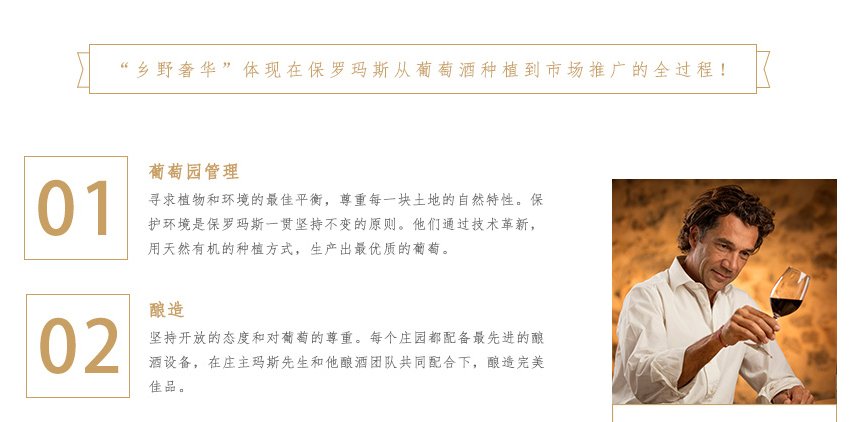 味蕾:酒體飽滿,入口圓潤,單寧細(xì)膩而柔和,層次鮮明,有各種非常成熟的水果,如櫻桃,李子,白胡椒,甘草香料的氣息,余味綿長。