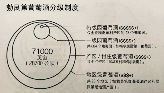 在勃艮第,土地被分為4個等級,地區(qū)級Regionale、村莊級Village、一級園Premier Cru和特級園Grand Cru。