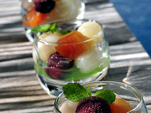 具有濃郁而新鮮的香氣的水果沙拉最適合同樣香氣四溢的葡萄酒。葡萄酒加盟人士認(rèn)為,天然甜葡萄酒和起泡酒、香檳和微沫香檳酒都能夠突出水果的清新,使得整道甜點的味道既爽口輕盈而又不失精致細(xì)膩。